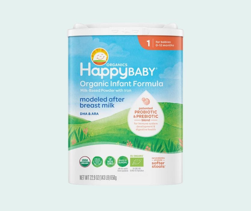 Happy Baby includes two types of prebiotics (GOS and FOS) that mimic those naturally found in breast milk to promote healthy gut bacteria.