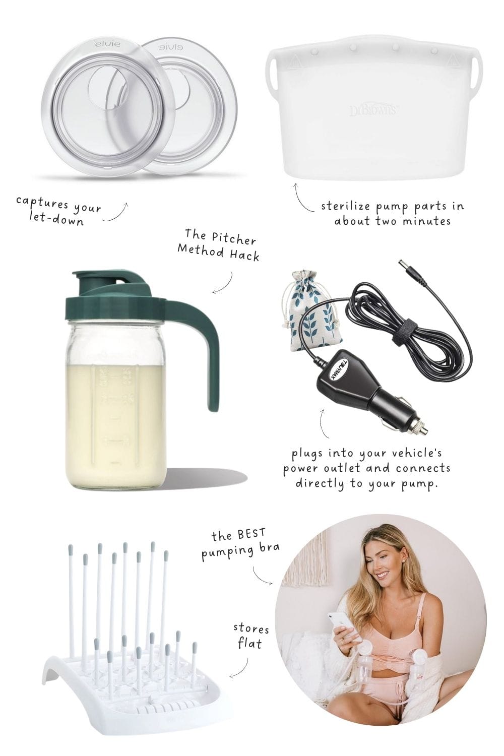 2. Pumping Bra If you're using a traditional electric pump, a hands-free pumping bra holds the flanges in place so you can eat, scroll your phone, or stare off into the distance while listening to a true crime podcast while your pump does its thing. A solid investment and Kindred Bravely constantly comes up as a favorite.